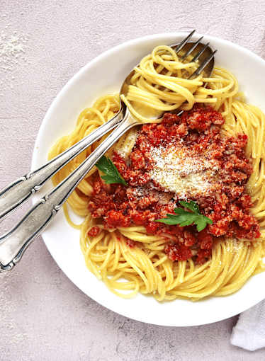Fresh made Napolitana sauce with fresh basil, parmesan cheese.